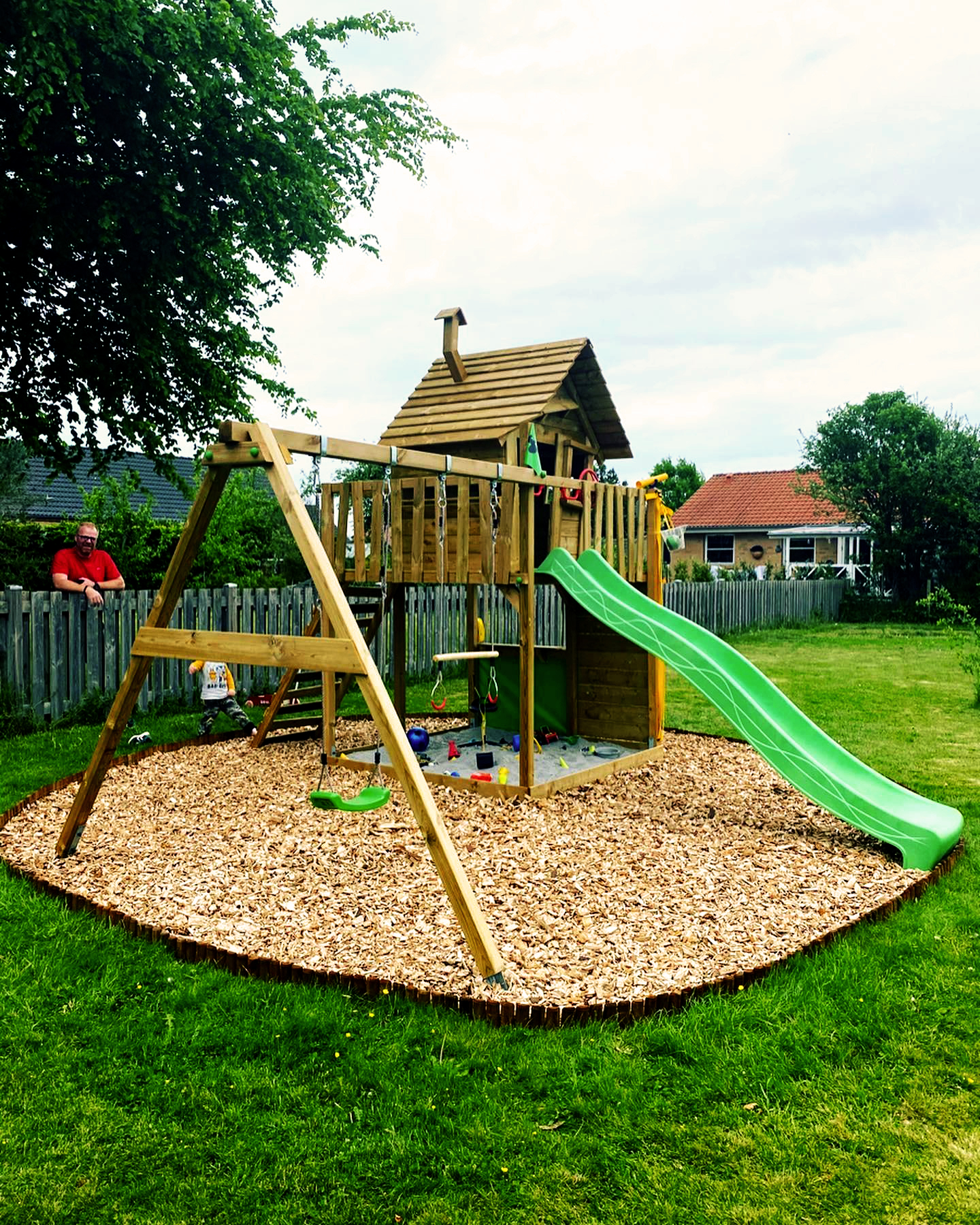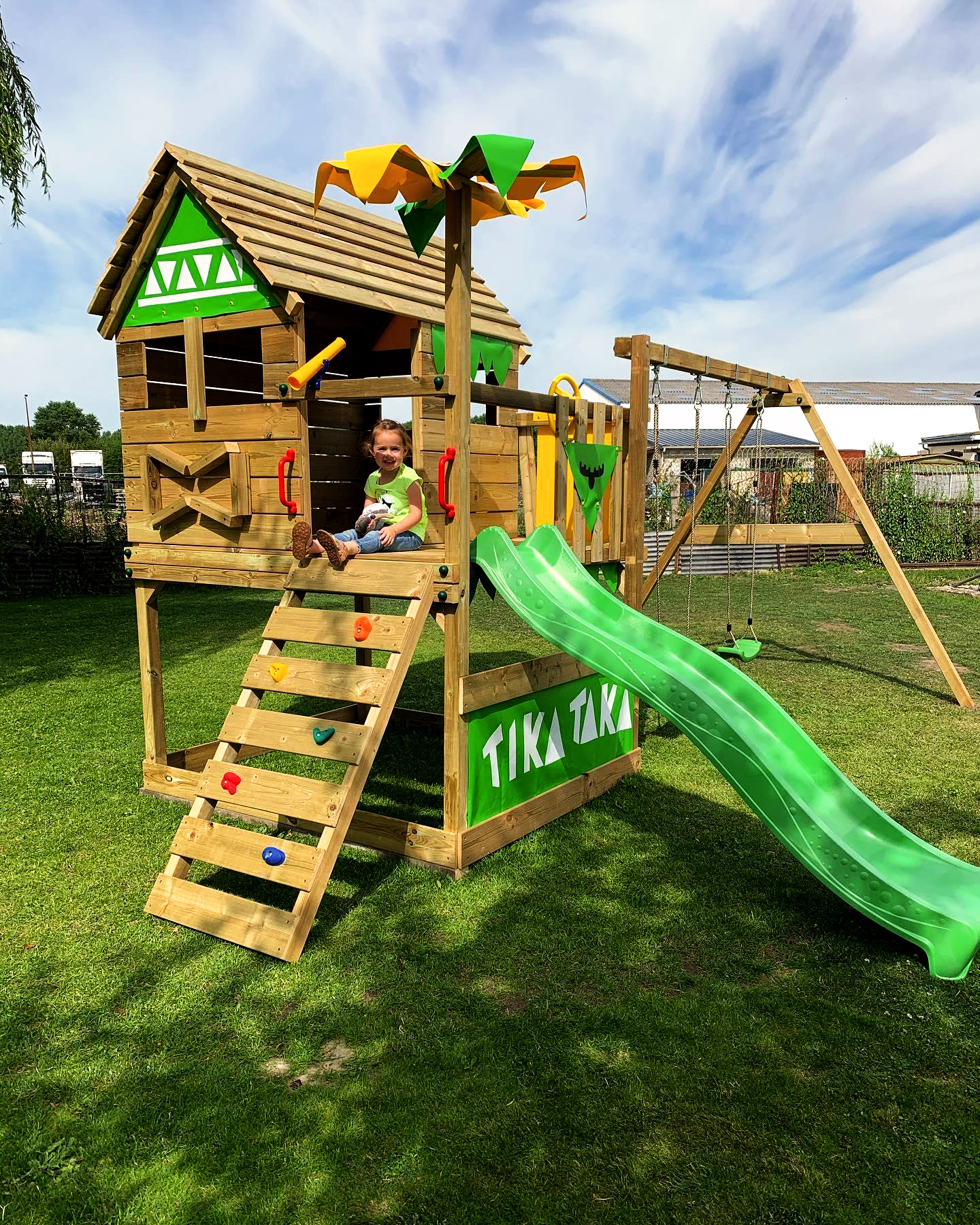 (vysoká zelená budova po levé straně hned u hlavní silnice)
